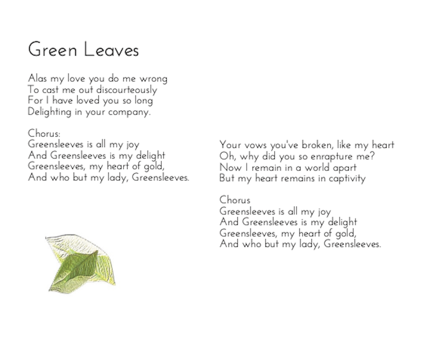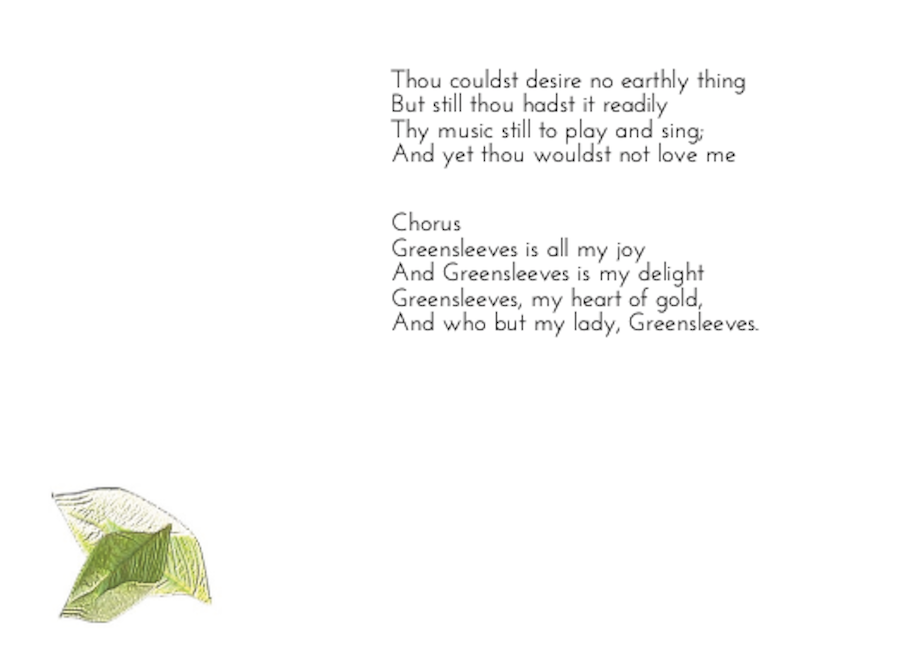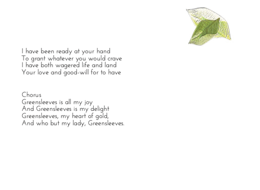 Greensleeves, my heart of gold And who but my lady, Greensleeves.