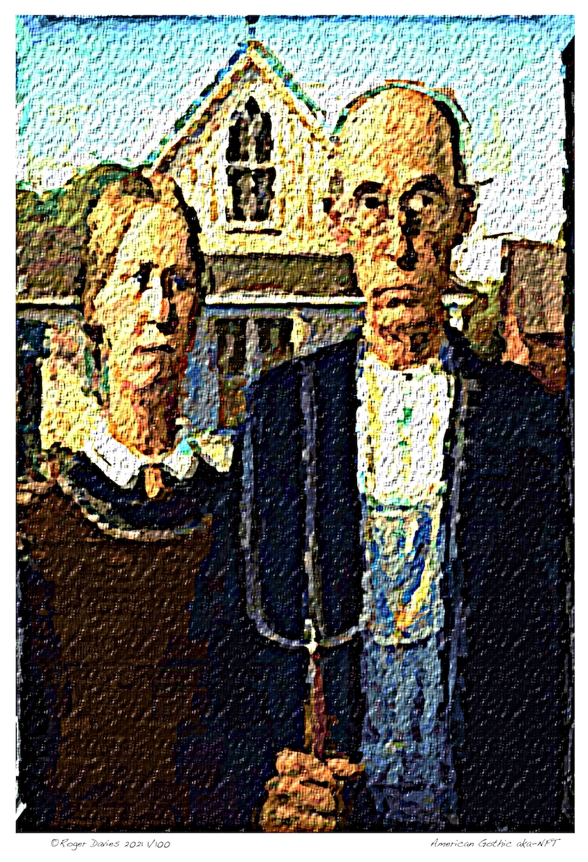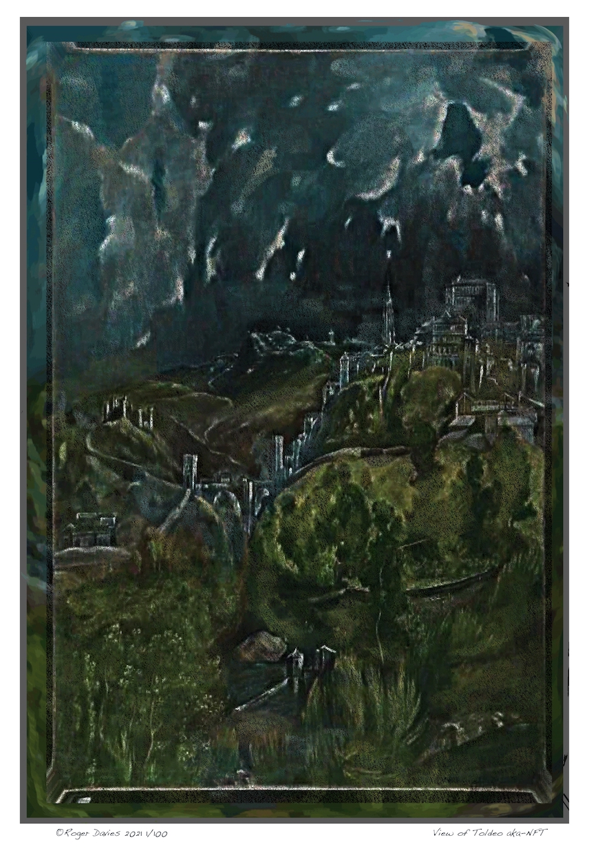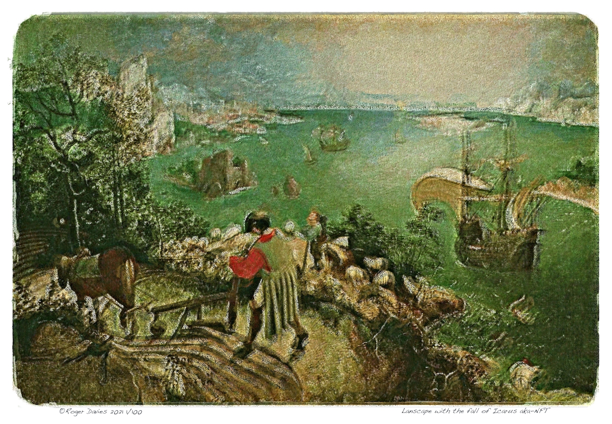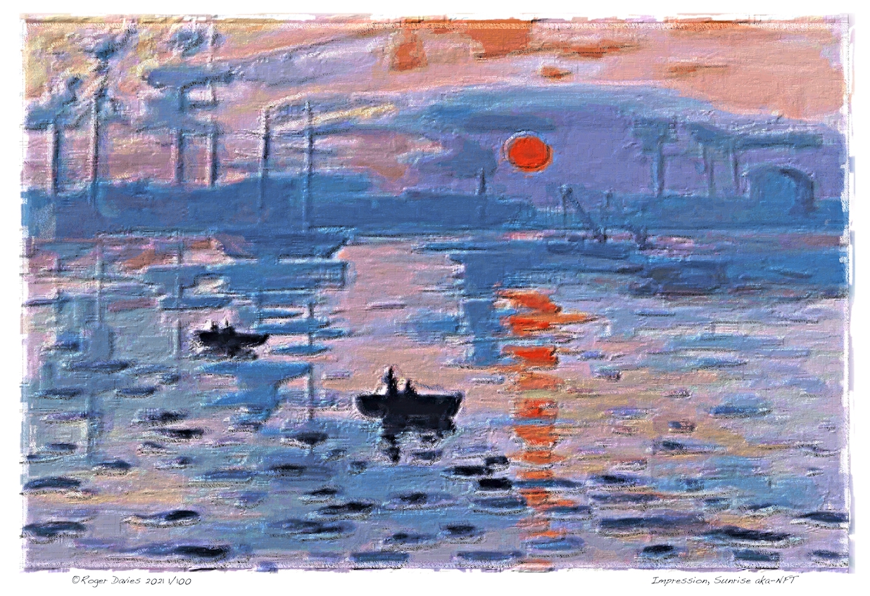 As for our 'interpretations' of the artworks show here - the point is that they are NOT copies but 'interpretations' of both the subject, visual content and style of the original 'old master' intentionally distorted so as to make a wry comment on the NFT aspect - hence the title of each piece as 'the original title aka-NFT'.